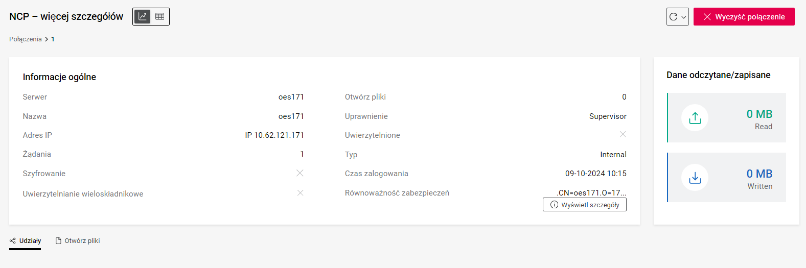 Udziały lub połączenia NCP nie są wyszczególniane, gdy dowolny z wybranych serwerów wirtualnych jest nieosiągalny, offline lub uśpiony.
