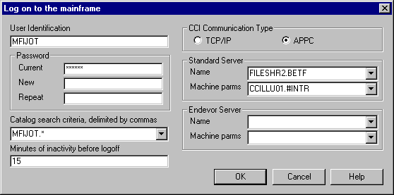 Once the system has been configured correctly for use with CCI the following CCI parameters in Mainframe Access must be configured as described below: