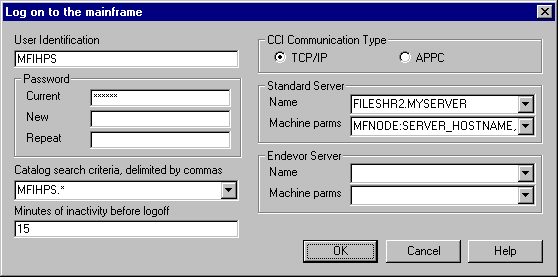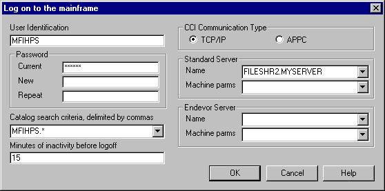 In the example below the mainframe Server Name used is FILESHR2.MYSERVER.