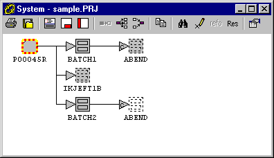 The System View illustrates the calls that link programs in the project together. It displays icons that depict the project's different programs as well as other system items. Between the icons are the links that connect them. The icons and links represent source code entities.