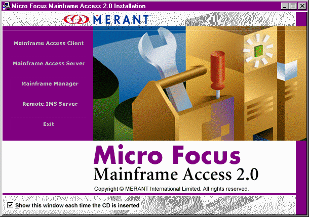 To install the Mainframe Product Suite servers, you must start the workstation installation program which will guide you through the install process. The installation program will guide you through a series of dialog boxes, which will collect the necessary information to generate the installation procedures. Each dialog box has additional help associated with it, and can be invoked by depressing the help button. This will invoke the internet browser on your machine (either Netscape or Internet Explorer) to display the help information.