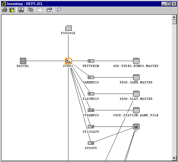 The Inventory view creates a complete graphical view of a program or JOB, including all of their related entities.