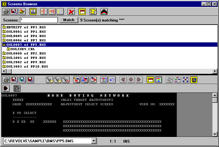 The Screens Information Browser displays information about the screens used by the programs in your project. With the Screens Information Browser, you can access information about the file which contains a screen definition, programs that use the screen, the line number, and type of each screen access.