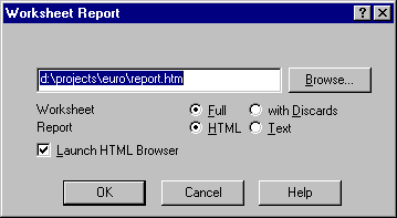 You can choose to produce a full report (all worksheet items are shown, including those marked as discarded) or to limit the report to just those items that are currently displayed in the worksheet.