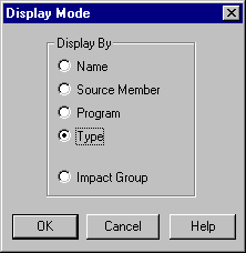 When Early Release Options is checked in the User Options dialog, the Duplicates button will appear on the Impact Analysis button bar. When this button is clicked or engaged, all logical matches of the type/name specified will be displayed. When this button is not engaged, or not visible, only one variable per physical definition will be displayed.