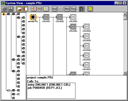 The Inventory view creates a complete graphical view of a program or JOB, including all of their related entities.
