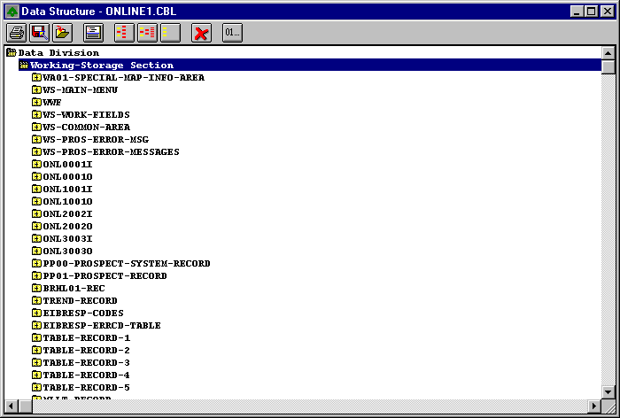 The Data Structure view illustrates the data hierarchy by displaying all the variables in a program, section, or group level.