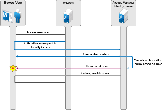 Access Manager service provider federation profiles do not allow control-based authorization policies. Usually, the service providers enforce authorization rules. However, all service providers do not have this flexibility. It is recommended to not rely on a service provider to enforce such rules. You can apply an authorization policy to a configured service provider to allow or to not allow access to the service provider. Identity Server evaluates service providers and generates assertions.
