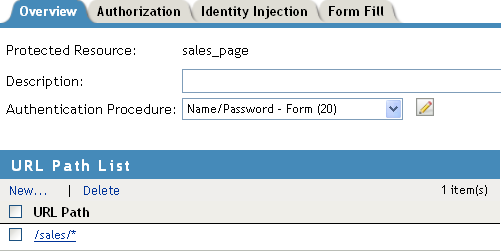 In the Protected Resource List, click New, specify sales_page for the name, then click OK.