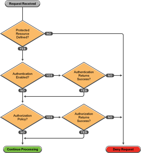 The following diagram depicts how Authorization policies fit into the protected resource processing for the proxy: