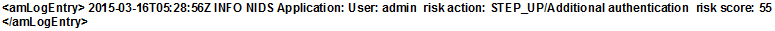 This log entry indicates that the as per the risk level/action configuration, the action taken is additional authentication and the risk score is 55.