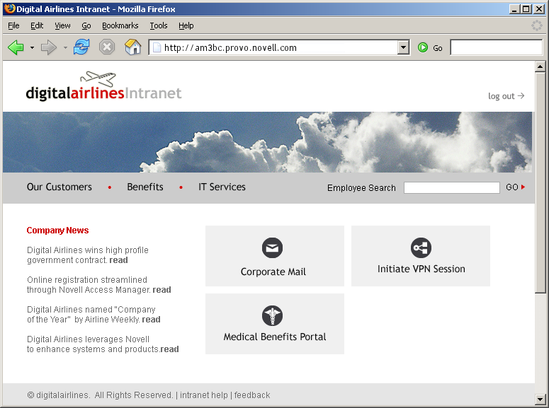 Currently, Corporate Mail and Medical Benefits Portal do not link to available pages. They exist to illustrate what you could do when you require your users to authenticate before accessing the site.