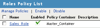 In the Roles Policy List, select Sales_Role, then click Enable.