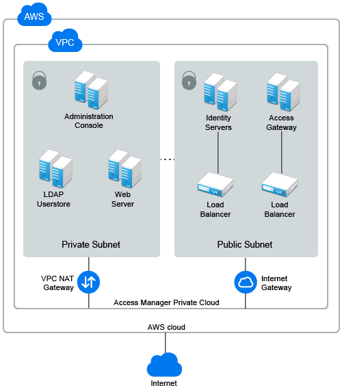 For information about how to deploy Access Manager on AWS EC2, see ‘Deploying Access Manager on Amazon Web Services EC2.