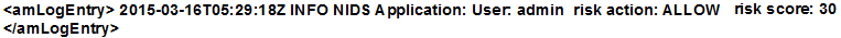 This log entry indicates that the as per the risk level/action configuration, the action taken is to allow authentication to the user and the risk score is 30.