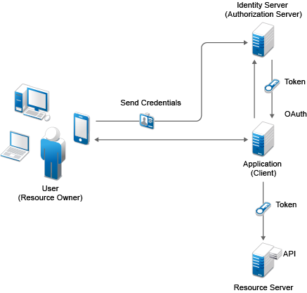 The client application requests authorization from a user (resource owner). Client applications can make the authorization request directly to the resource owner or through the authorization server (Identity Server) as an intermediary.