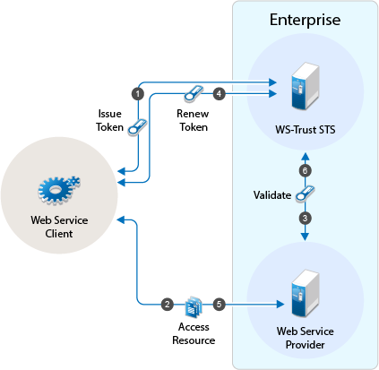 When the token is nearing expiry, the web service client sends a RST to WS-Trust STS to renew the token previously issued. The STS renews the validity of the token and sends a renewed token to the web service client for any further requests.