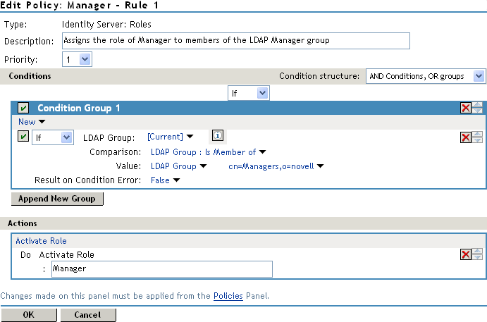 <amLogEntry> 2009-06-07T21:40:25Z INFO NIDS Application: AM#500199050: AMDEVICEID#9921459858EAAC29: AMAUTHID#YfdEmqCT2ZutwybD1eYSpfph8g5a5aMl6MGryq1hIqc=: IDP RolesPep.evaluate(), policy trace: ~~RL~0~~~~Rule Count: 1~~Success(67) ~~RU~RuleID_1181251958207~Manager~DNF~~1:1~~Success(67) ~~CS~1~~ANDs~~1~~True(69) ~~CO~1~LdapGroup(6645):no-param:hidden-value:~ldap-group-is-member-of~SelectedLdapGroup(66455):hidden-param:hidden-value:~~~True(69) ~~PA~ActionID_1181252224665~~AddRole~Manager~~~Success(0) ~~PC~ActionID_1181252224665~~Document=(ou=xpemlPEP,ou=mastercdn, ou=ContentPublisherContainer,ou=Partition,ou=PartitionsContainer,ou=VCDN_Root,ou=accessManagerContainer,o=novell:romaContentCollectionXMLDoc),Policy=(Manager),Rule=(1::RuleID_1181251958207),Action=(AddRole::ActionID_1181252224665)~AdditionalRole(6601):unknown():Manager:~~~Success(0) </amLogEntry>