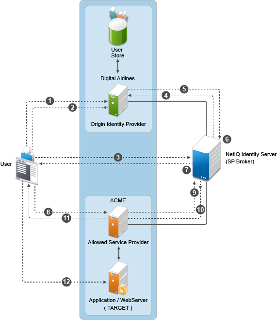 SP Broker receives the SAML assertion from Digital Airlines identity provider and caches attributes/roles received. SP Broker applies any Role policies that have been enabled.