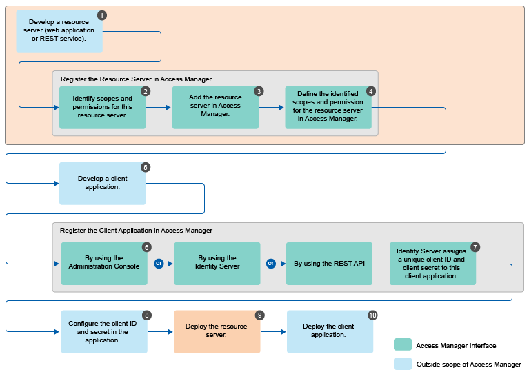 Add the resource server in Access Manager. See Adding a Resource Server. (Application Developer or Administrator)