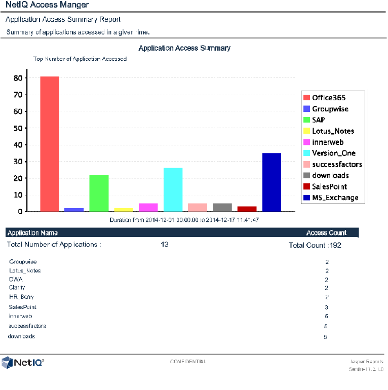 NOTE:In this sample report, Office365 and SuccessFactors are names of the protected resources configured in Access Gateway reverse proxies. These are not federated Office 365 and Success Factor requests.