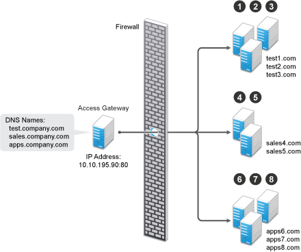 Whether a client can use one DNS name or multiple DNS names to access Access Gateway depends upon the configuration of your DNS server. After you have configured your DNS server to allow multiple names to resolve to the same IP address, you are ready to configure Access Gateway.