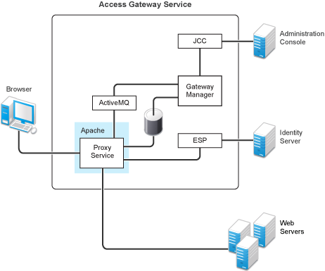 ActiveMQ: Handles real-time communication between Administration Console and the Proxy Service. Errors generated from the Gateway Manager to the ActiveMQ module are logged to the Tomcat logs. Errors generated from the Proxy Service to the ActiveMQ module are logged to the Apache error logs.