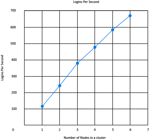 In this test, each node is assigned 8 CPU and 16 GB memory. Performance is measured by increasing the number of nodes in the cluster.