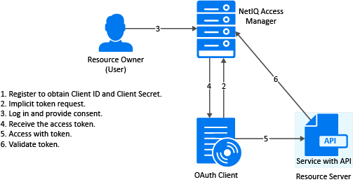 To view how the implicit flow works, you can use the Access Manager OAuth samples. For more information about the samples, see Developer Resources.