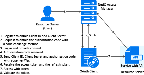 To view how the authorization code with PKCE flow works, you can use the Access Manager OAuth sample script. For more information about the OAuth samples, see Developer Resources.