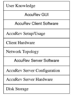 • AccuRev Client software runs on each AccuRev user’s machine. The command-line interface is implemented as a single program, accurev, which executes a single command and then exits. The graphical user interface is implemented as two programs: the user-visible Java application acgui is long-lived; when the user invokes a command through the GUI, acgui runs the background application accurevw, which communicates with the Server and then exits.As the above description indicates, the AccuRev Server is the heart of the AccuRev system. The sizing and configuration of the AccuRev Server machine significantly impacts the performance perceived by users. We highly recommend that you first read The AccuRev Data Repository of the AccuRev Concepts Manual, along with the rest of this manual. We also recommend that you attend training courses offered by AccuRev, Inc.The AccuRev Server is a multi-threaded application. Each individual AccuRev operation, such as executing a History command, uses only one thread, which runs on one CPU. When multiple client command requests arrive at the AccuRev Server at (approximately) the same time, these commands are executed through normal operating system multitasking. On a multiple-CPU machine, the threads are shared across all available CPUs.Experience indicates that, on average, a user will actually “hit” the AccuRev Server for less than 5 minutes per day. Typically, Server utilization is not uniform throughout the day, but tends to form peaks and valleys. For example, you might find that multiple users Keep their changes just before the nightly build is started, or that users tend to Update their workspaces at approximately the same time (e.g. when they arrive at work, or just after lunch).Customer data has consistently shown that “peak load” rarely exceeds 15%. That is, you are unlikely to experience a situation in which more than 15% of the active AccuRev users have overlapping requests being processed by the AccuRev Server. (You can determine the number of active users by examining the Server log. Or you can simply assume that all the users listed by the command accurev show users are active.) The most common command request during peak load periods is Update. This also is the AccuRev command that requires that most processor, disk, and network resources.AccuRev’s network bandwidth usage is similar to that of ftp. For instance, a keep command on 100 files needs to send a list of 100 files to the server, in addition to the contents of those files. AccuRev is transaction-based; it often works on groups of files in a single transaction. Thus, the full list of file names and contents is sent to the server in one burst. This minimizes changes in the direction of data transfer, effectively removing the impact of any network latency.