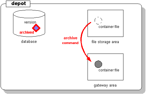 After determining which versions to process, the archive command moves a version’s container file from a “normal” location under the
