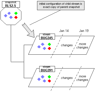 • A depot’s streams and snapshots are organized into a stream hierarchy: each stream or snapshot has one “parent”, and can have any number of “children”.