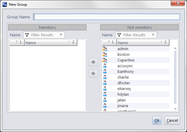 button to move them between the Members and Not members lists.
