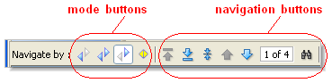 • If theConflicts mode button is selected, the navigation buttons traverse just the sections with conflicting changes.