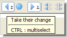 2. Hold down the Ctrl key, and click another conflict-resolution button. The newly selected block is sent to the merged version, below the previously selected block. The conflict-resolution buttons are annotated with numbers, indicating the order you selected. (And the tooltip reminds you of this "multiselect" capability.)You can undo a multiselect by clicking any of the conflict-resolution buttons without holding down the Ctrl key. Typically, you'll need to do some manual editing to "smooth out" the combined changes of a multiselect.