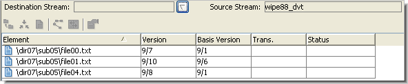 • The Merged Versions pane appears only after you've merged or patched versions in the Specified Versions pane. It lists the versions created by Merge or Patch, and provides a convenient way to promote these versions to the destination stream.
