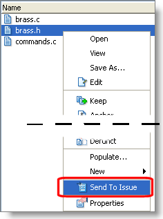 In the Version Browser, a variation of this operation, Send to Issue (specifying basis), enables you to pick the basis version, rather than allowing AccuRev to determine it automatically.