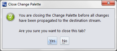 If you attempt to close the Change Palette when either pane is non-empty, AccuRev prompts you for confirmation.