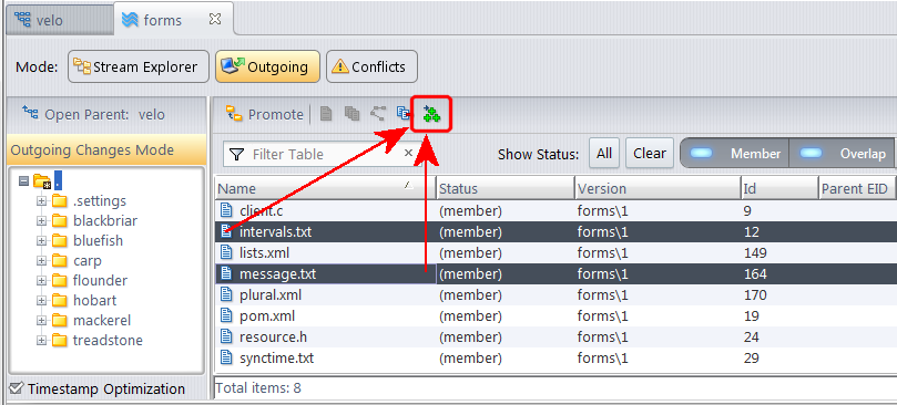 2. From a StreamBrowser: All the versions with changes that have not been propagated to the destination