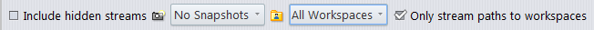 A Stream Favorite is a way to limit the stream hierarchy shown in the StreamBrowser to the stream path of a specific stream and all its children. See Using Stream Favorites on page 160 for more information.The View > Users/Groups menu option allows you to restrict the set of users and groups displayed in the StreamBrowser and other locations in the AccuRev GUI. See Filter Users/Groups (View Users/Groups Command) on page 38 for more information.Tip: You can also create Stream Favorites to limit the stream hierarchy shown in the StreamBrowser and any list of streams available in the AccuRev GUI. See Using Stream Favorites on page 160 for more information.This checkbox is a toggle switch: it reveals/hides the data structures that have been Remove'd. (The Remove command doesn't actually delete anything from the depot; the data structure just becomes invisible and inactive.)This drop-down list controls how many snapshots are visible in the StreamBrowser. It contains the choices No Snapshots (the default), All Snapshots, Past week, Past 2 weeks, and Past 4 weeks. (Check the Include hidden streams checkbox if you want to see snapshots that have been Remove'd.) No matter what the setting, a snapshot remains visible if there are any workspaces or streams below it.This drop-down list controls which of the depot's workspaces are visible in the StreamBrowser. It contains the choices All Workspaces, No Workspaces, Current User (the default), Unassigned, and the name of each registered AccuRev user and group. (Check the Include hidden streams checkbox if you want to see workspaces that have been Remove'd.) To control which users and groups appear in this list, use the Filter Users/Groups (View Users/Groups Command) on page 38 command.This checkbox is a toggle switch. Select it to filter the streams so that only the stream paths to workspaces -- the streams directly connecting the root stream to the workspace -- are visible in the StreamBrowser. Unselect it to remove the filter. Use the Workspaces list to control which workspaces are shown.If the Enable StreamBrowser History preference is checked (AccuRev Preferences (Tools > Preferences Command) on page 39), a set of history controls are added to the toolbar. This enables you to view the stream hierarchy as it existed at any point in the past.