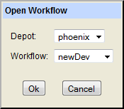 2. To open a workflow for a different depot, first change the depot in the Depot field, then select the workflow and click Ok.