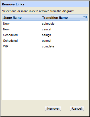 11. When you unlink two workflow stages, you are simply de-coupling the source and destination stages; it has no effect on the transition associated with the destination stage. If you want to delete a transition, see Deleting a Workflow Transition on page 149.