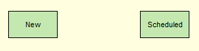 7. When you delete a transition from a workflow, you also delete the link between the two stages that are joined by that transition. For example, in the following illustration, deleting the to Scheduled transition...Tip: AccuRev displays a confirmation message when you delete a transition.