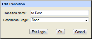 5. To add or modify transition actions, click the Edit Logic button.See Specifying Actions for Stages and Transitions on page 157 for more information on defining actions.