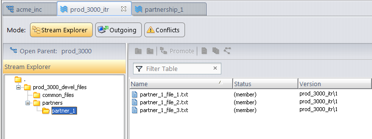 full accesss to all elements) view the contents of the prod_3000_itr stream, all folders and elements are visible. In the following example, the elements in partner_2 are displayed