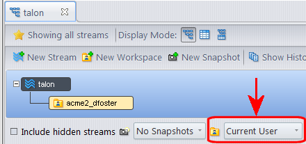 Opening the StreamBrowser™ The StreamBrowser allows you to easily see and control your development stream hierarchy graphically. 1. Click the View Streams button on the AccuRev toolbar. Alternative: Select View > View Streams from the AccuRev main menu. 2. If prompted, select your depot from the list of depots in the Please Choose Depot dialog box and click Ok. The StreamBrowser appears, showing the streams in your depot. 3. In the filter at the bottom of the StreamBrowser tab, make sure that All Workspaces or Current User is selected in the drop-down field. These settings include your "private" workspace streams in the display. Currently, there is only one "public" development stream: the depot’s “base stream” or “root stream”. It has the same name as the depot.