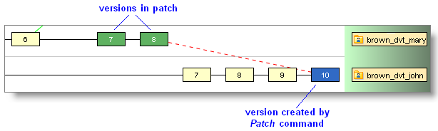 Derek decides to patch version brown_dvt_mary/7 into his workspace. He invokes the