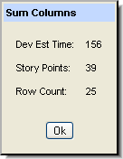 The Sum Columns command allows you to easily sum certain fields for issues displayed in the Web UI. For example, you might want to sum the Dev Est Time field for the issues displayed in the Query Results pane in the Queries tab.