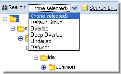 The File Browser's Search command lets you search for elements by AccuRev status. Search response times can be affected by your network connection speed, by AccuRev's response time, and by the total number of elements in the open stream.If the File Browser is not showing the results of a search, the Search field displays <none selected>.See File Statuses for more information.Selects elements whose status includes (member).Selects elements whose status includes (overlap), where the current version in the parent stream is not an ancestor of this version. This means there might be changes in the parent stream version that are not present in this version.Selects elements that satisfy the Overlap search criterion in the current workspace or stream, along with Overlap elements in the parent stream, in the grandparent stream, and so on, all the way up the stream hierarchy for the current depot.Selects elements whose status includes (underlap), where the current version in the parent stream is not an ancestor of this version, but the parent-stream version already contains all the changes of this version.Selects the elements in the default group of a workspace or dynamic stream whose status is (defunct).A link to the Web UI URL (see Obtaining Web UI Links) used to access the current search is shown to the right of the drop-down list.The Details pane shows either the AccuRev elements in a selected directory, or the results of an AccuRev search. The Search field in the Folders pane shows the name of the search, or <none selected> if a directory's contents are shown.Invokes your Web browser's Open command, allowing you to open or save the selected file.Opens the Promote dialog box to send the current version of the element to the parent of the current stream. See Promoting Elements.Opens the Version Browser, showing the versions of this file in the AccuRev repository.Displays the Displaying Element Properties dialog box for the selected file.If enabled by your AccuRev administrator, allows you to create a code review for the selected file, or add files to an existing code review. See Submitting AccuRev Elements to Code Review on page 48 for more information.Opens a Look up Stream tab that can be used to search for streams below the current stream in the stream hierarchy. See Search From options on page 10 for more information.Creates a new stream, based on (that is, as a child of) the selected stream.